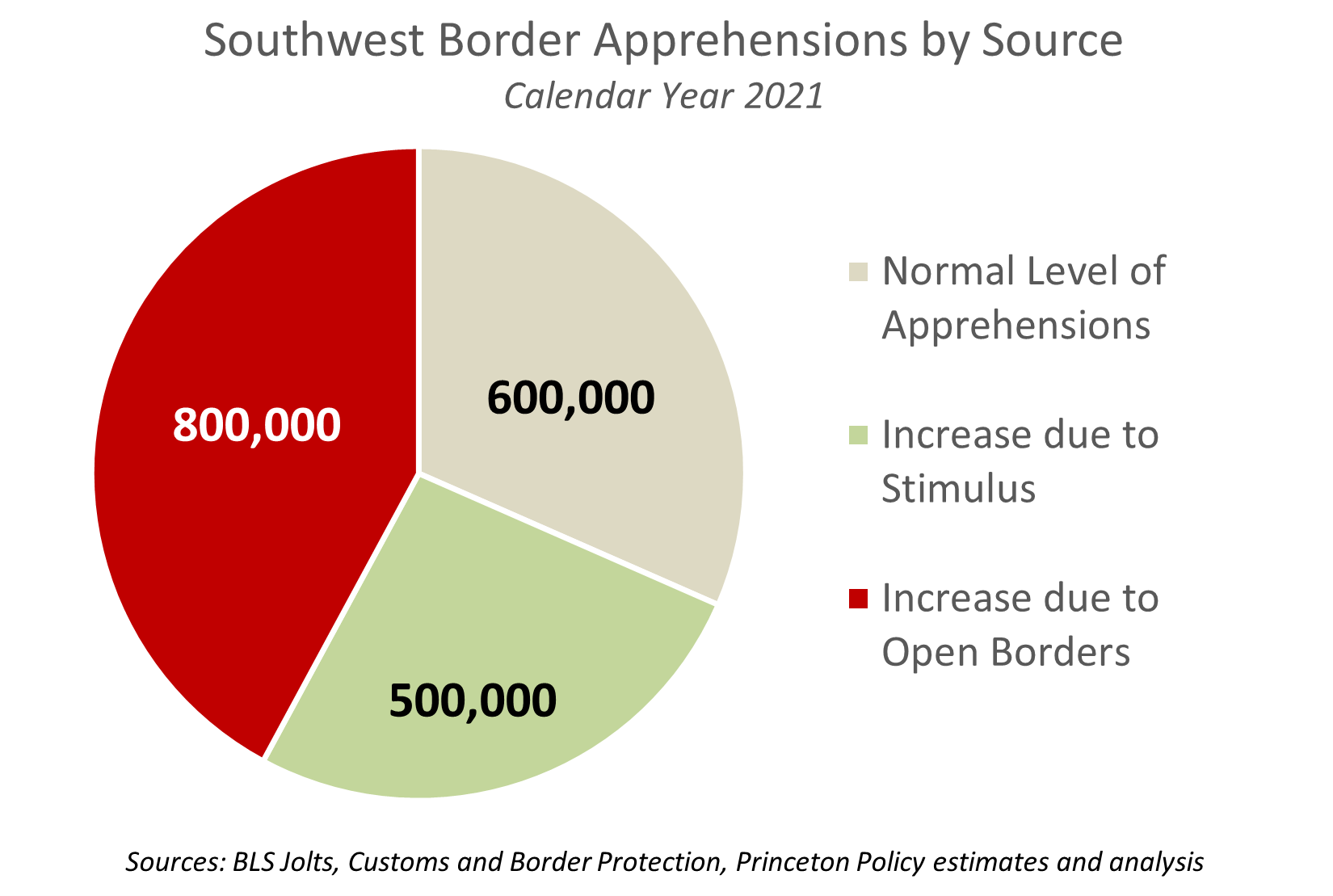 Of course, we forecast total calendar year, southwest border apprehensions at 1.9 million versus 1.1 million resulting from underlying economic trends and the various stimulus packages. The difference, 800,000, therefore can be reasonably attributed to the administration's Open Borders policy. We can see this surge of 100,000 monthly to April of this year, which added together month by month totals about 800,000 for the year as a whole.